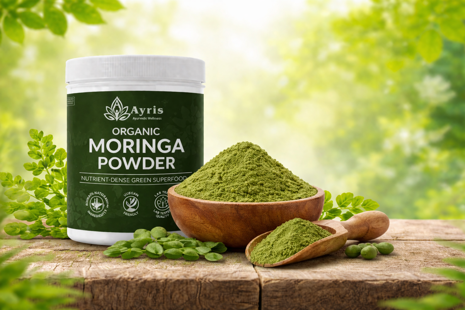 Moringa powder, derived from Moringa oleifera leaves, is a highly nutritious “superfood” packed with vitamins A, C, E, calcium, potassium, and antioxidants. It boosts energy, strengthens immunity, aids digestion, manages blood sugar, and supports skin/hair health.